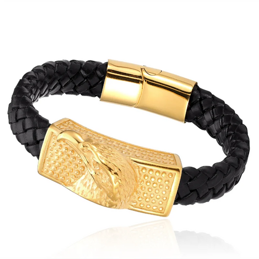 Echtes Leder Armband im Punk Design mit Löwe, Wolf und Leopardenmotiven