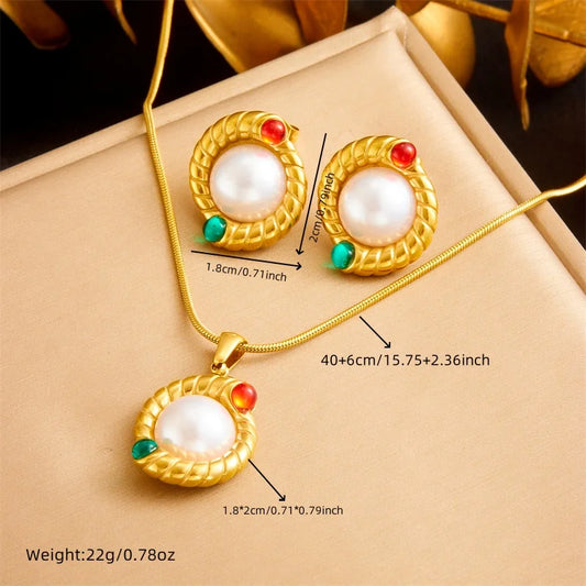 316L Edelstahl Vintage Runde Twist Einlage Weiße Perle Schmuckset Damen Neu Trend
