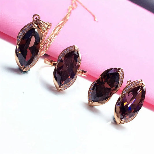 585 Lila Vergoldetes 14K Roségold Marquise Rubin Damen Schmuckset Luxus Hochzeit