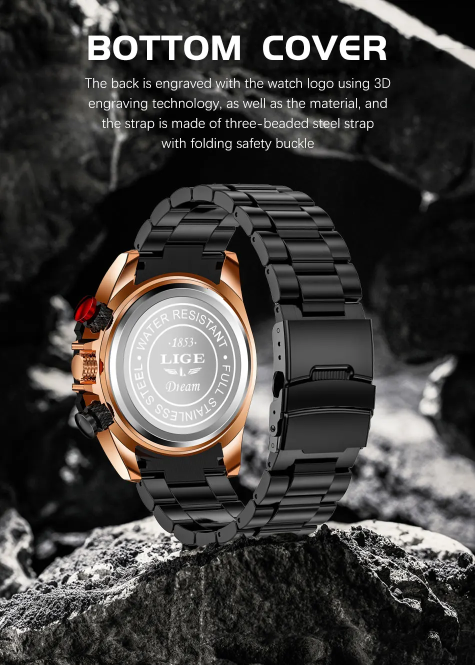 - Robustes Edelstahl-Gehäuse: Das hochwertige Edelstahl-Material garantiert Langlebigkeit und Widerstandsfähigkeit, sodass die Uhr auch den täglichen Herausforderungen standhält.